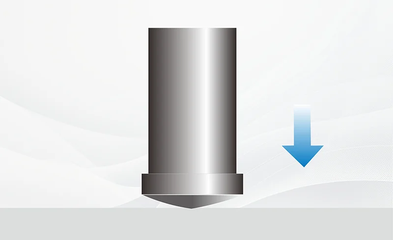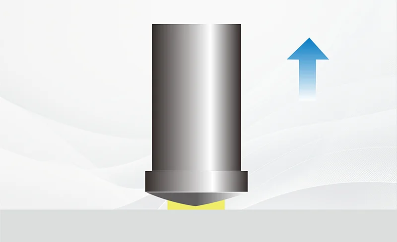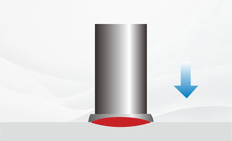 螺柱插进熔池,熔深约 0.4 mm,金属凝固,螺柱焊牢。